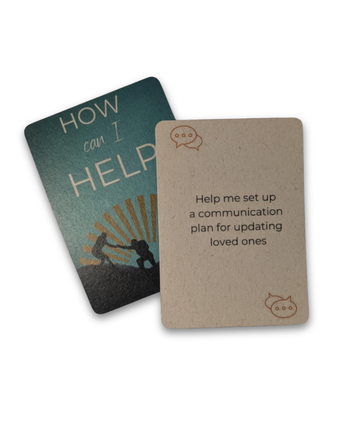 When times get tough, it can be hard to answer the question, "How can I help?" That's where the "How Can I Help?" card deck comes in. This thoughtfully designed deck contains 52 practical and compassionate ways to help a friend or family member facing a life-threatening diagnosis or other serious challenges. It’s your go-to guide for offering meaningful support when it's needed most.